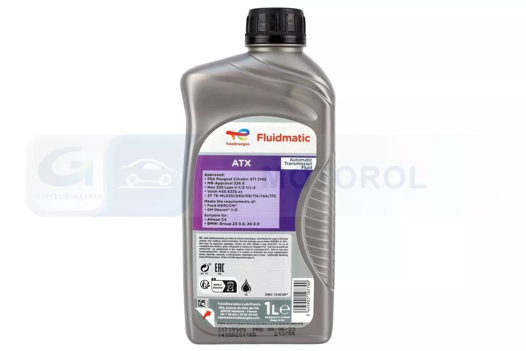 TOTAL ATF FLUIDE ATX transmisinė alyva – tai aukštos kokybės alyva, skirta automobilių automatinėms transmisijoms. Ši alyva užtikrina puikų pavarų dėžės veikimą, sklandų pavarų perjungimą ir ilgesnį transmisijos tarnavimo laiką. Ji atitinka daugelio automobilių gamintojų reikalavimus ir yra tinkama naudoti įvairiuose modeliuose.