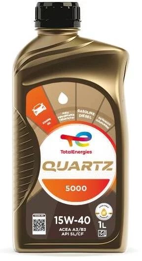 TOTAL Quartz 5000 15W-40 – aukštos kokybės variklinė alyva, skirta lengviesiems automobiliams.